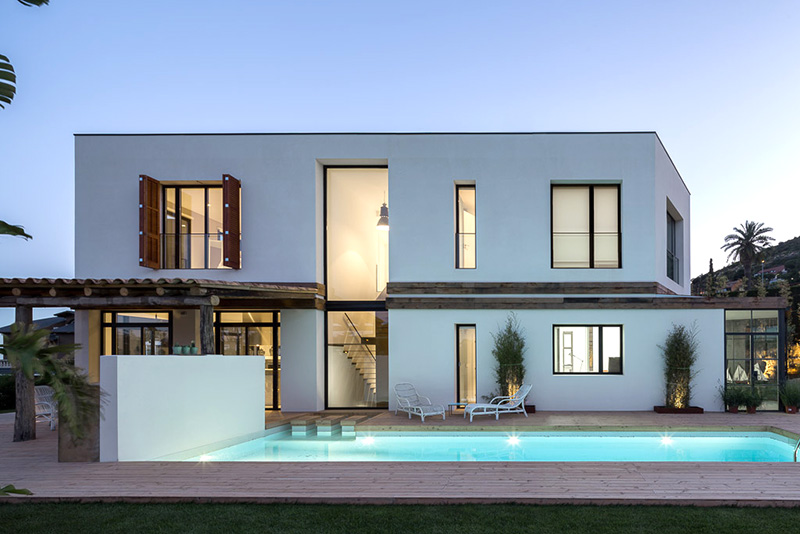 The architecture of this single-family home has been adapted to the unique shape of the plot, without relinquishing functionality or aesthetics. The simple geometries of the open area highlight the space and light, where the natural landscape is the real protagonist.